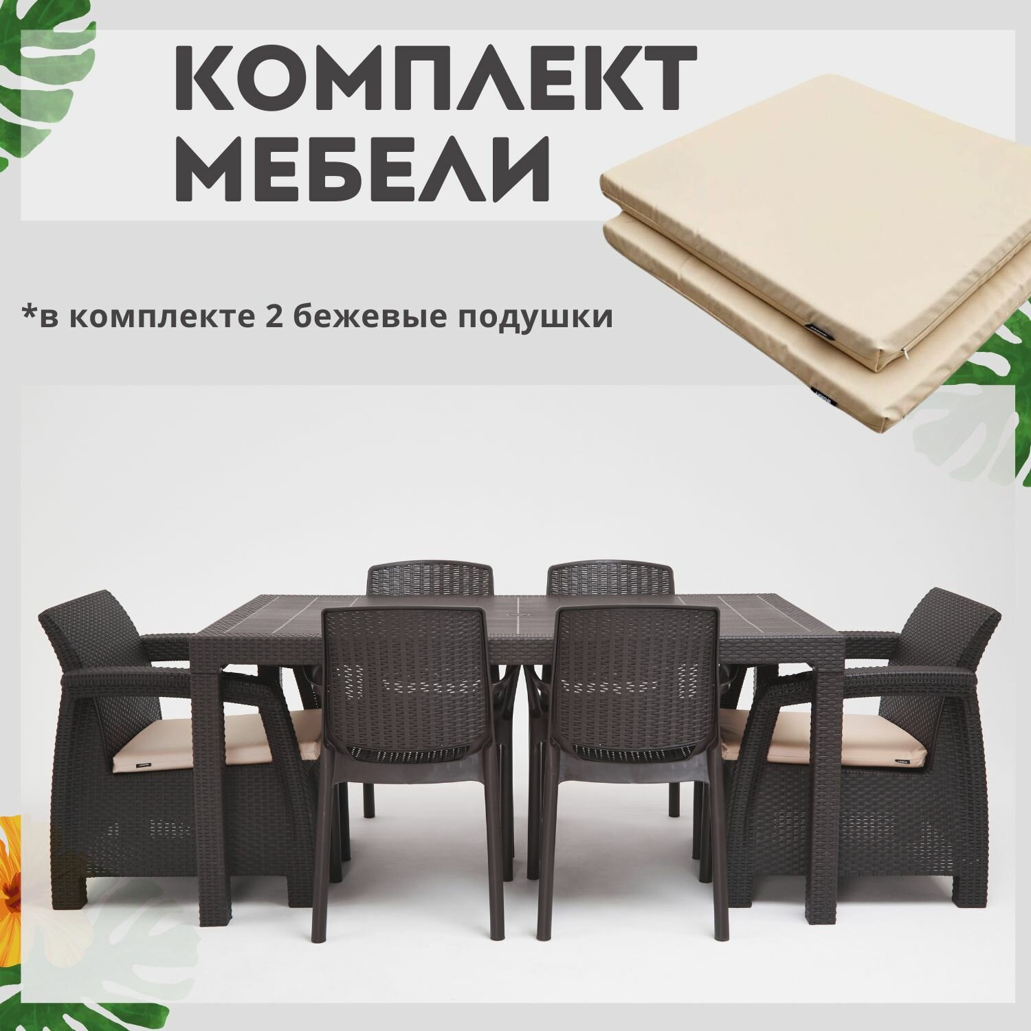 Комплект садовой мебели из ротанга Set 5+2+1+Bt, коричневые подушки