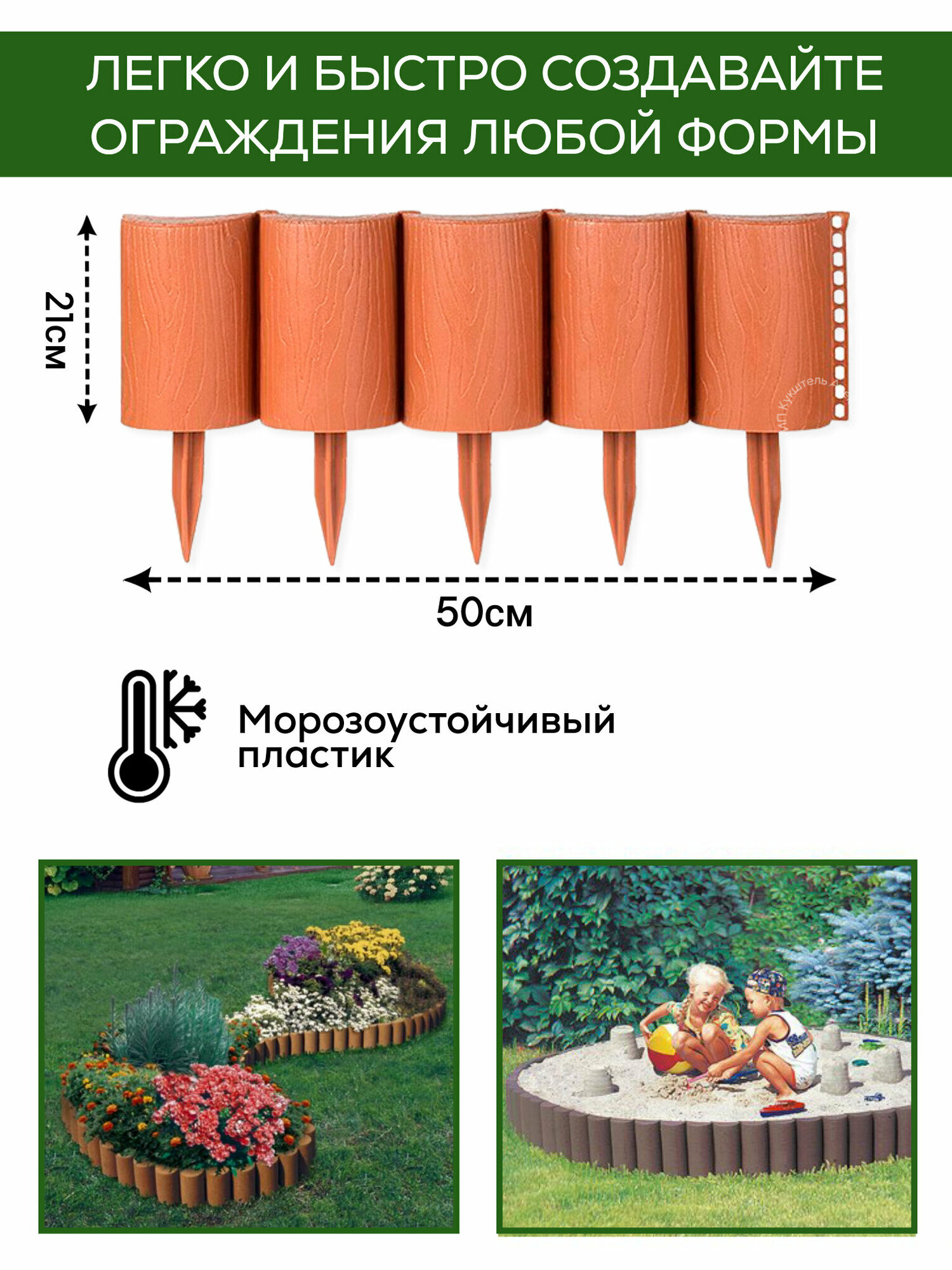 Ограждение "Садовый конструктор" 3 м. (коричневый), высота 21см / бордюр для сада / заборчик для клумб, грядок, огорода