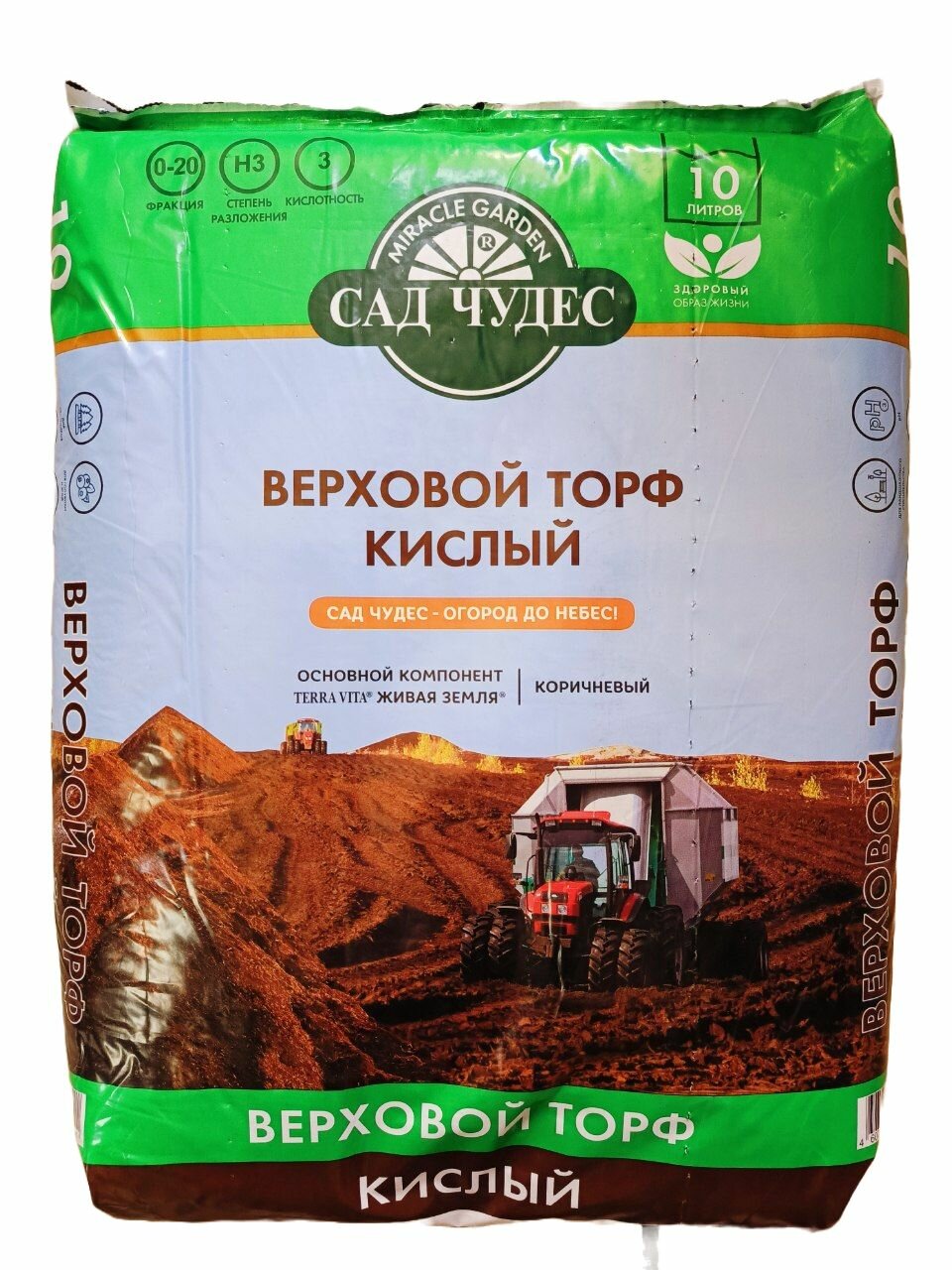 Торф верховой Сад Чудес, кислый, pH 3, для всех растений, 10л информация: