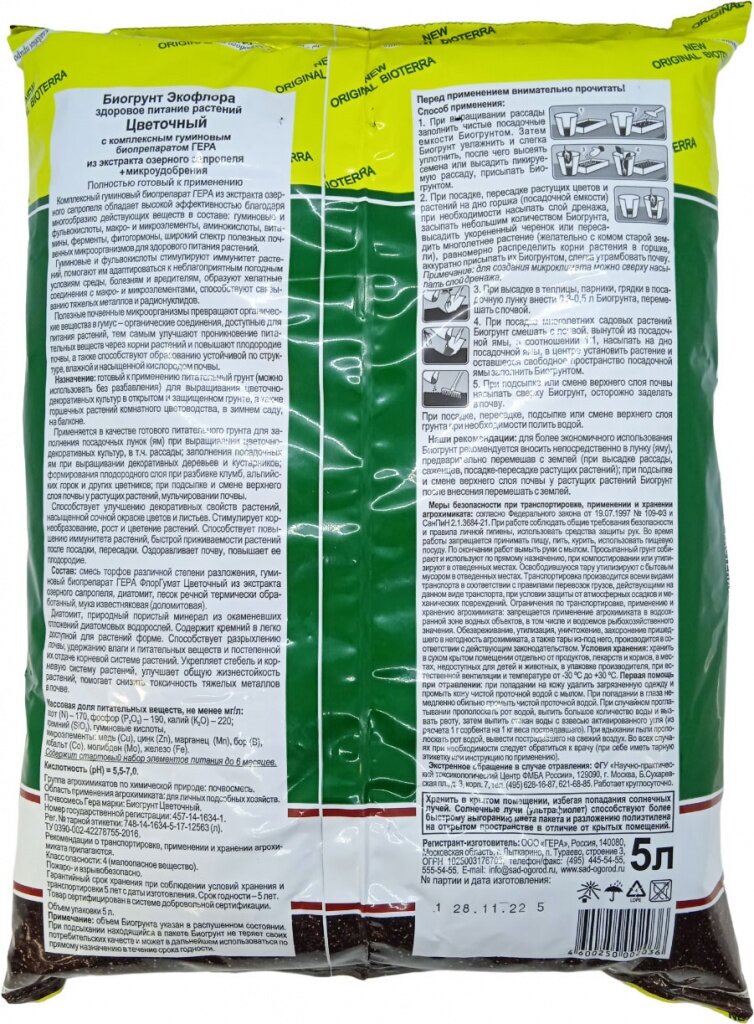 | Состав | Биогрунт Гера цветочный, 5 л, 0.5 кг |