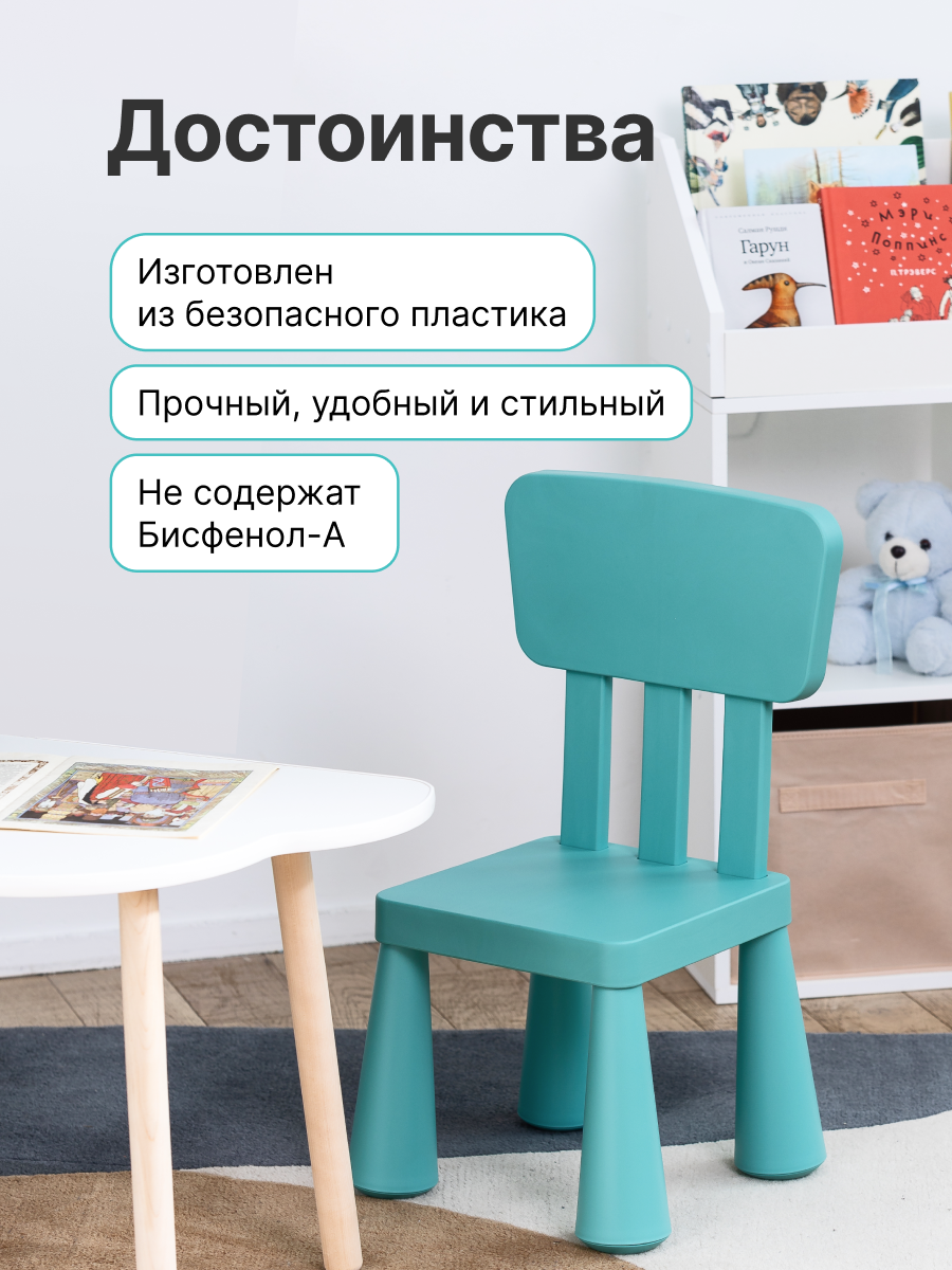 10 цен на Стул детский Мамонт, пластиковый детский стульчик со спинкой, бирюзовый