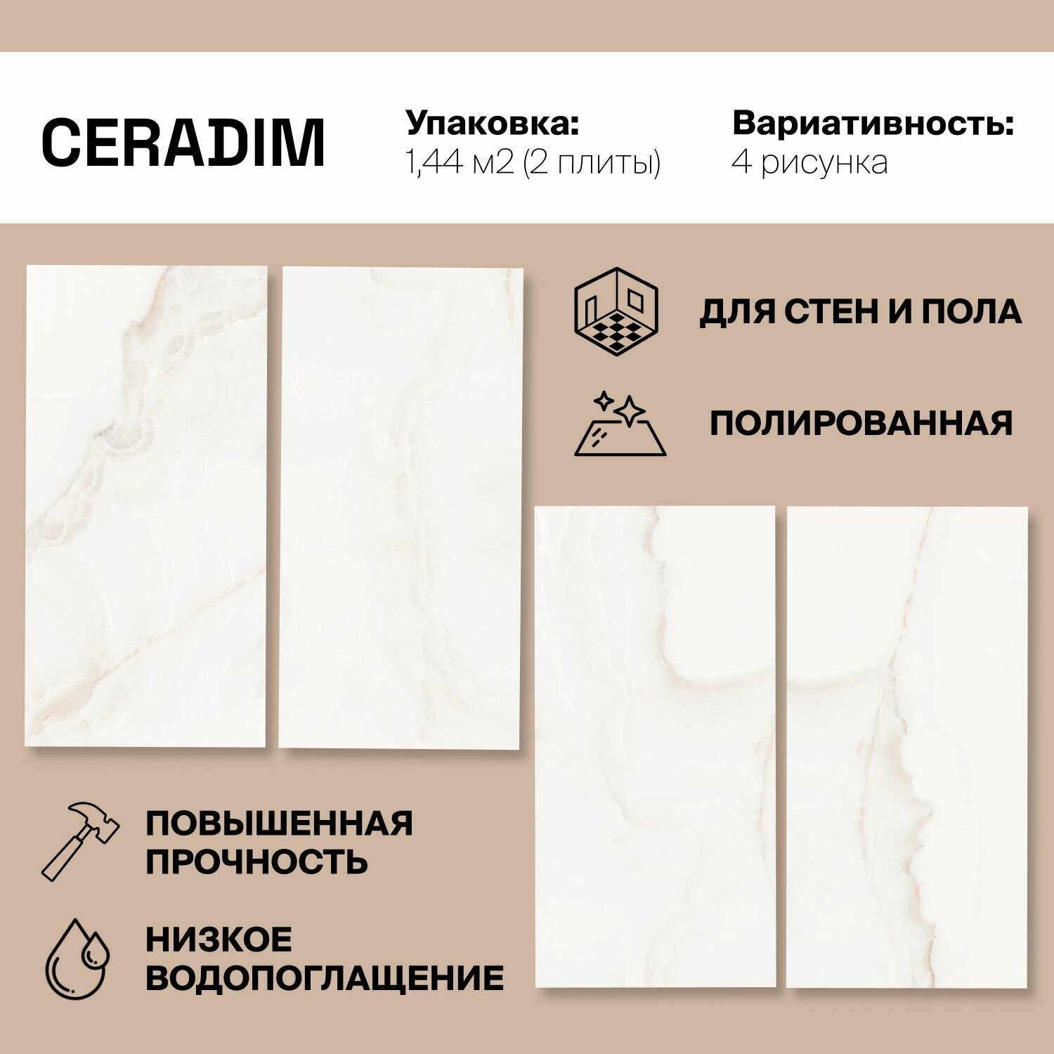 10 цен на Керамогранит Ceradim Onyx Imperator White белый, Полированный, 60х120 см., (2 плитки в упаковке), уп. 1,44 м2.