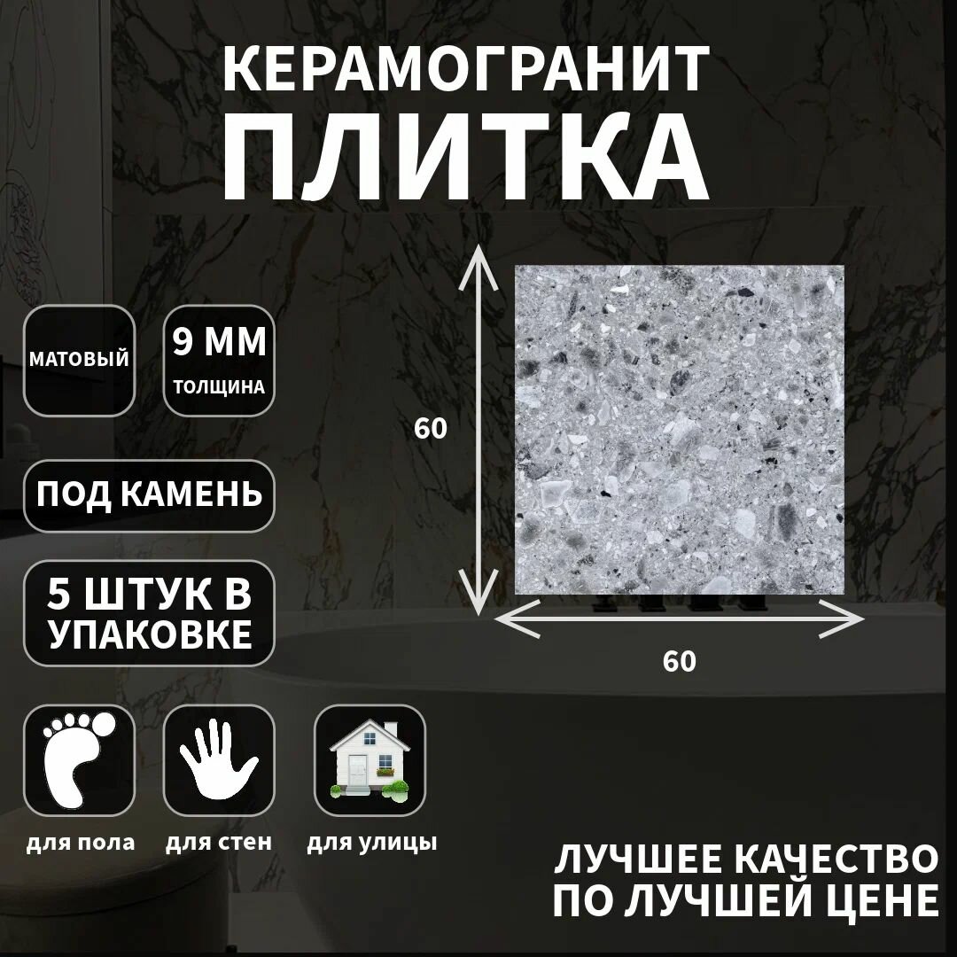 10 цен на Керамогранит Kerranova K-331, коллекция: Terrazzo, матовый, ректифицированный, 600x600x9 мм