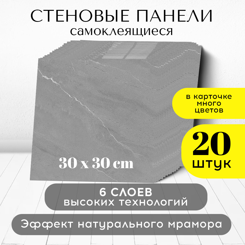 Панели стеновые самоклеящиеся декоративные 30*30 см., 20 шт., серый, белый мрамор Conflate 1 175 ₽