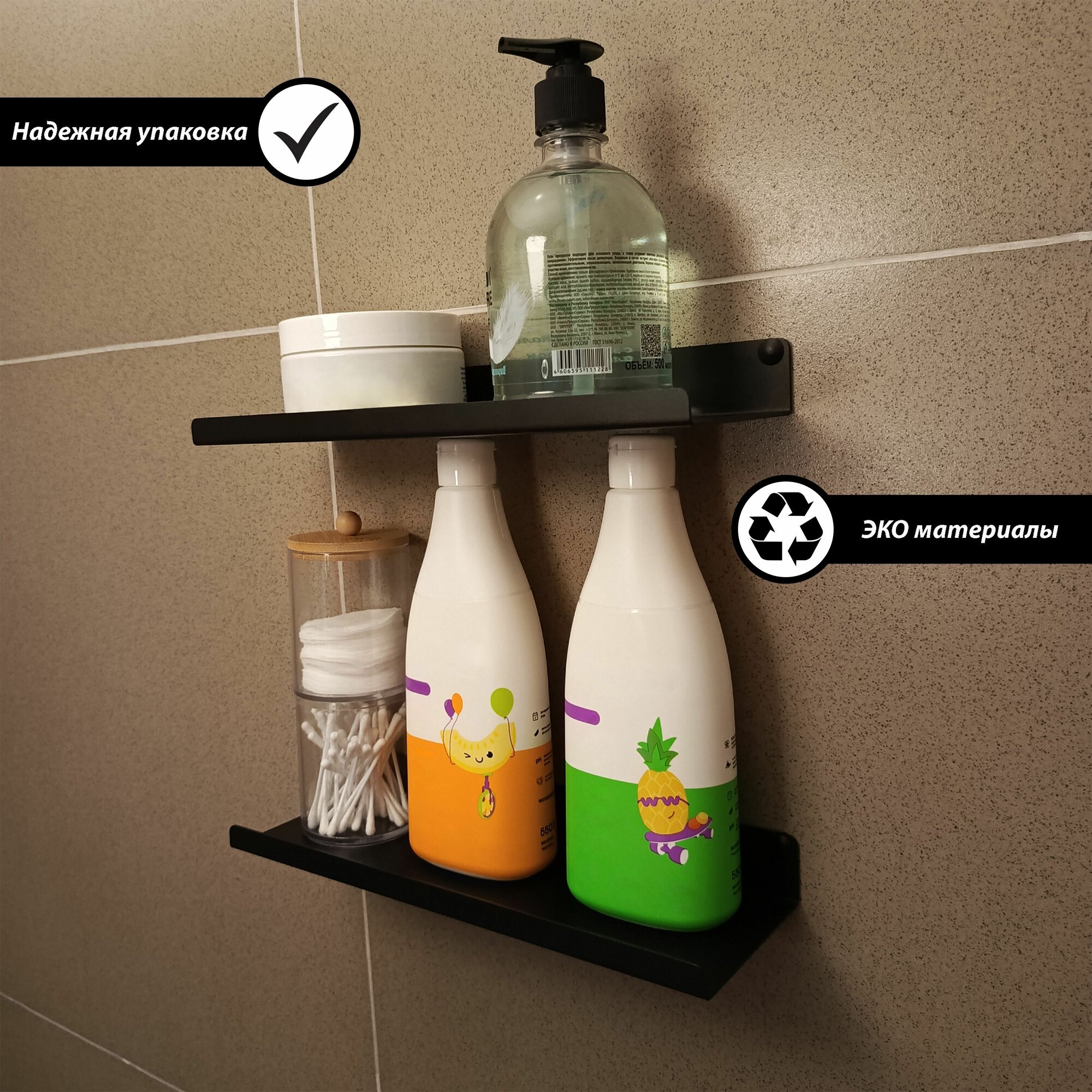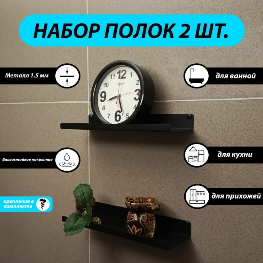 Набор 2 шт прямых металлических полок для ванной 30 см информация: