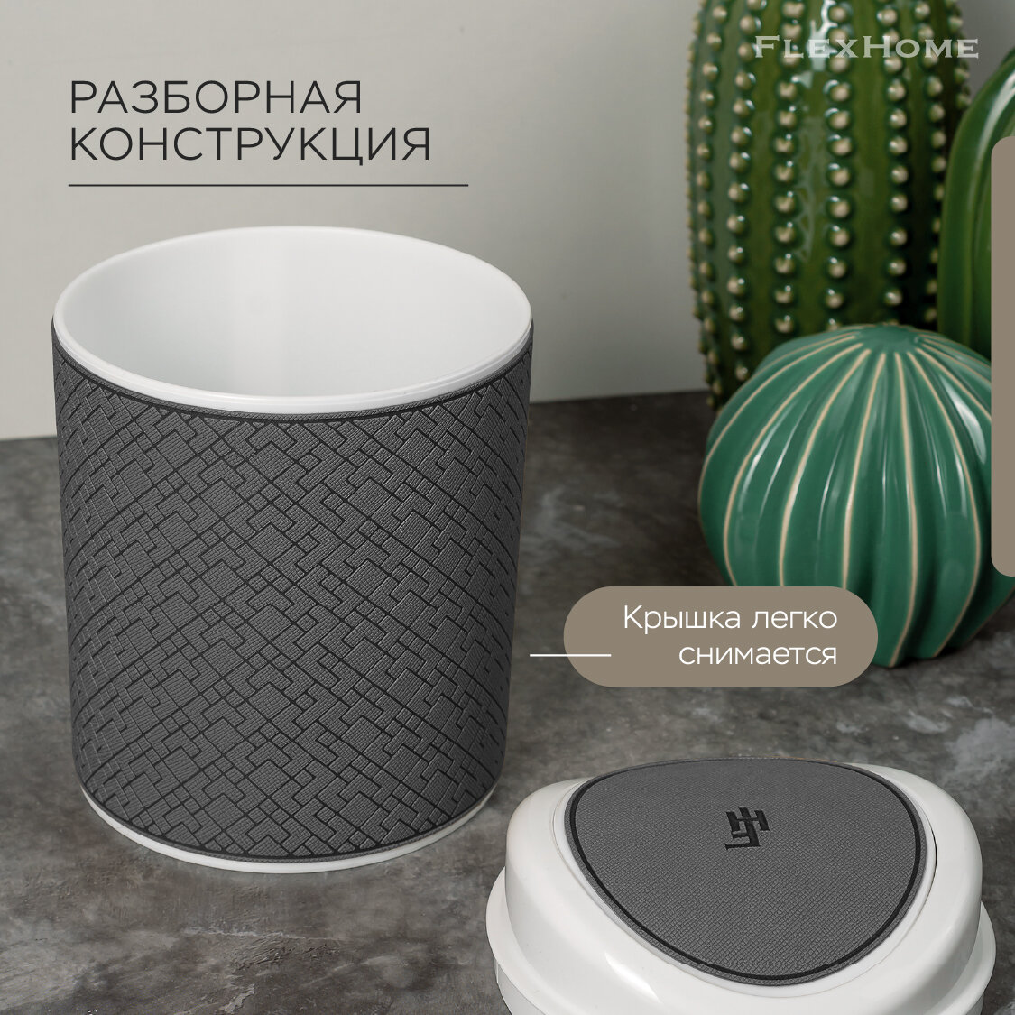 Отзывы на Настольный контейнер для мусора FlexHome, серый, с крышкой, пластик, 1л