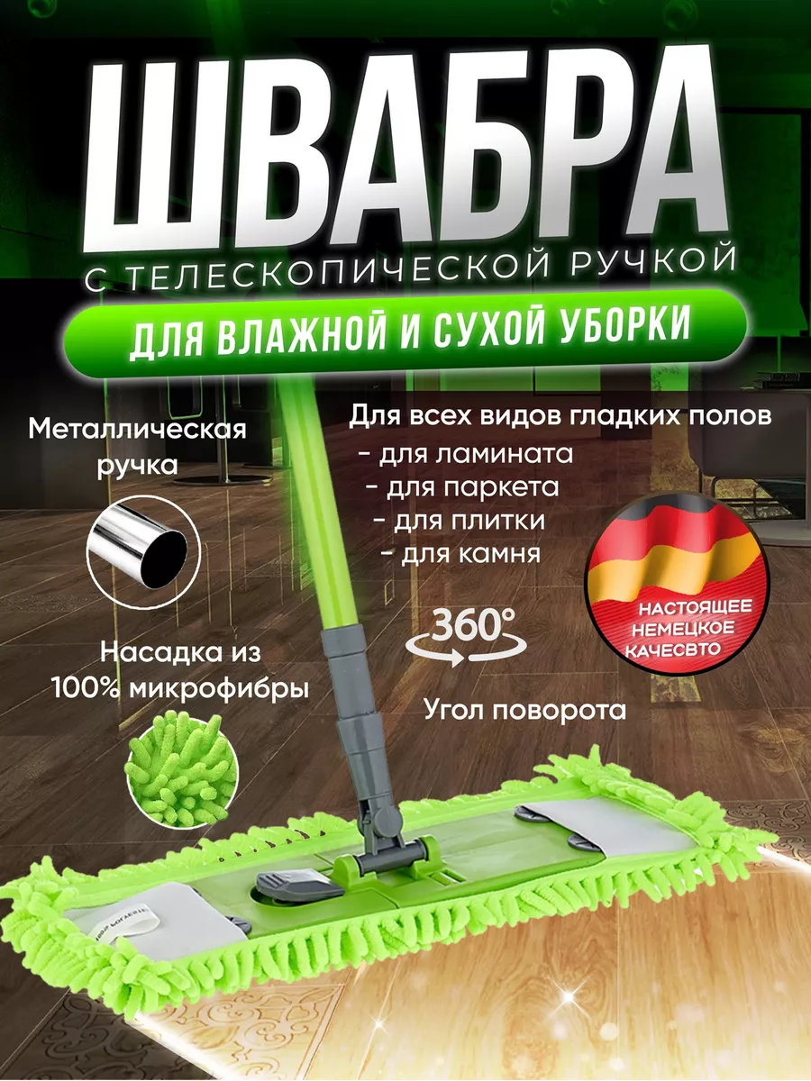 10 цен на Швабра с микрофиброй с длинным ворсом, флаундер 40х10 см, металлическая телескопическая ручка