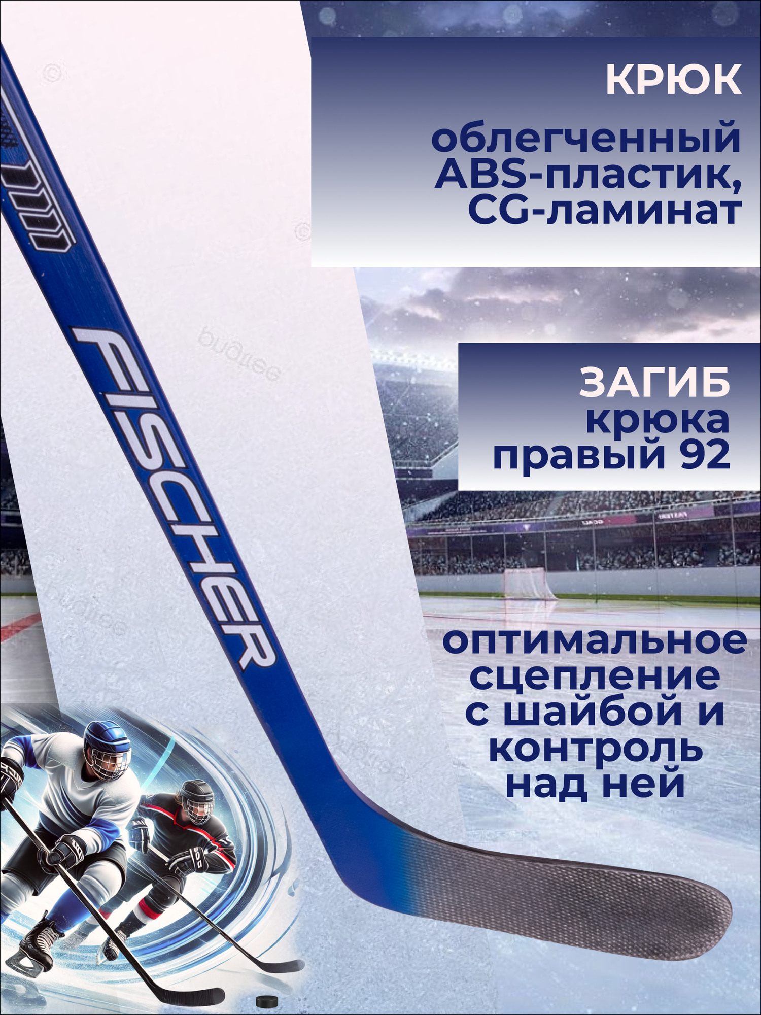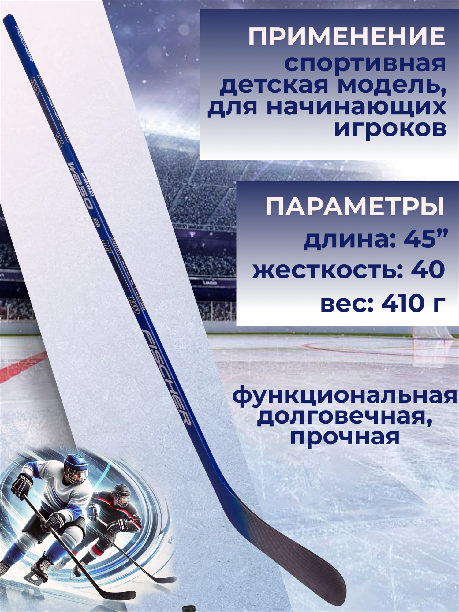 Отзывы на Клюшка хоккейная Fischer W250 ABS STICK YTH 45" детская L92 040 H153323 левый хват