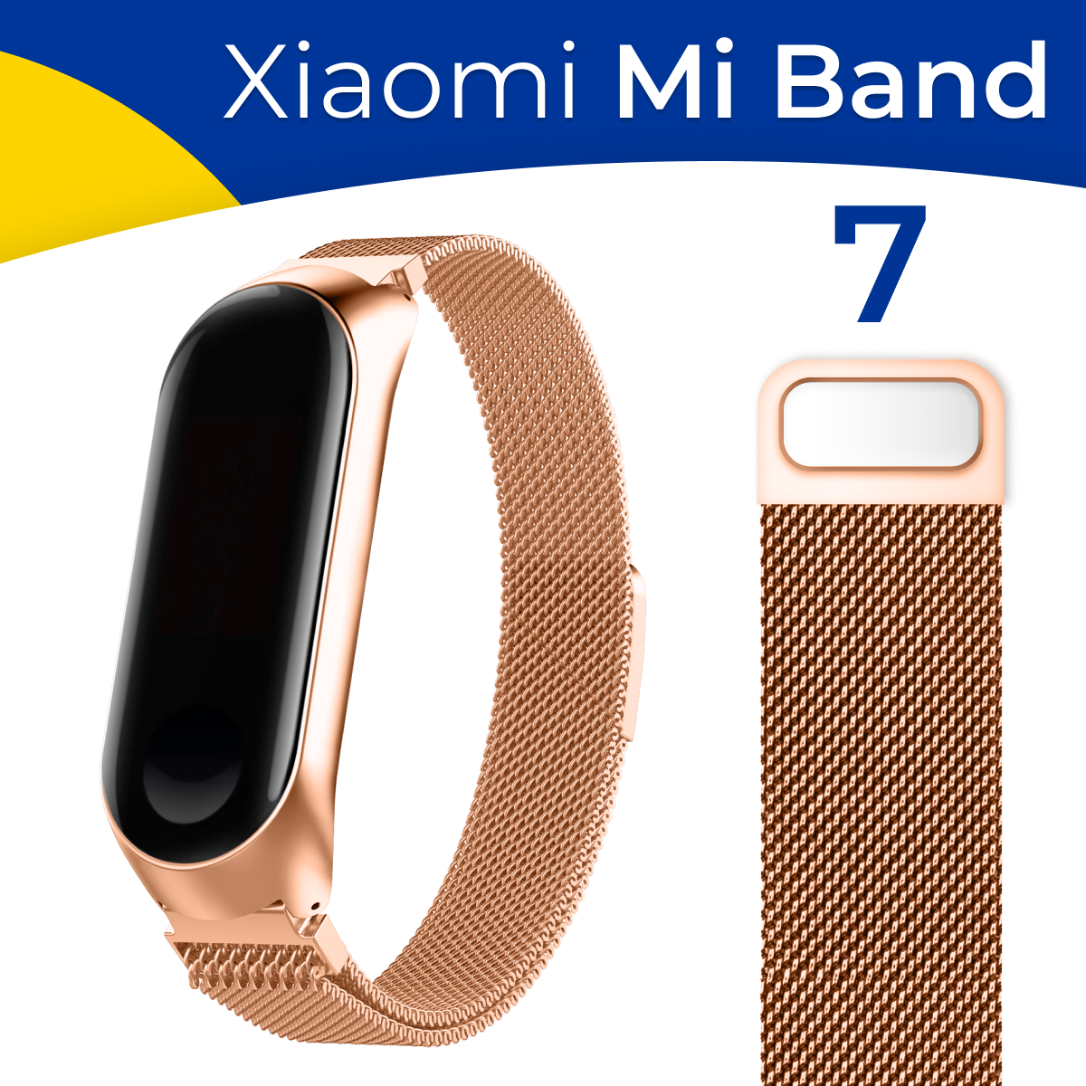 Металлический ремешок на фитнес-трекер Xiaomi Mi Band 7 / Стальной браслет миланская петля для умных смарт часов Сяоми Ми Бэнд 7 / Розовое золото информация: