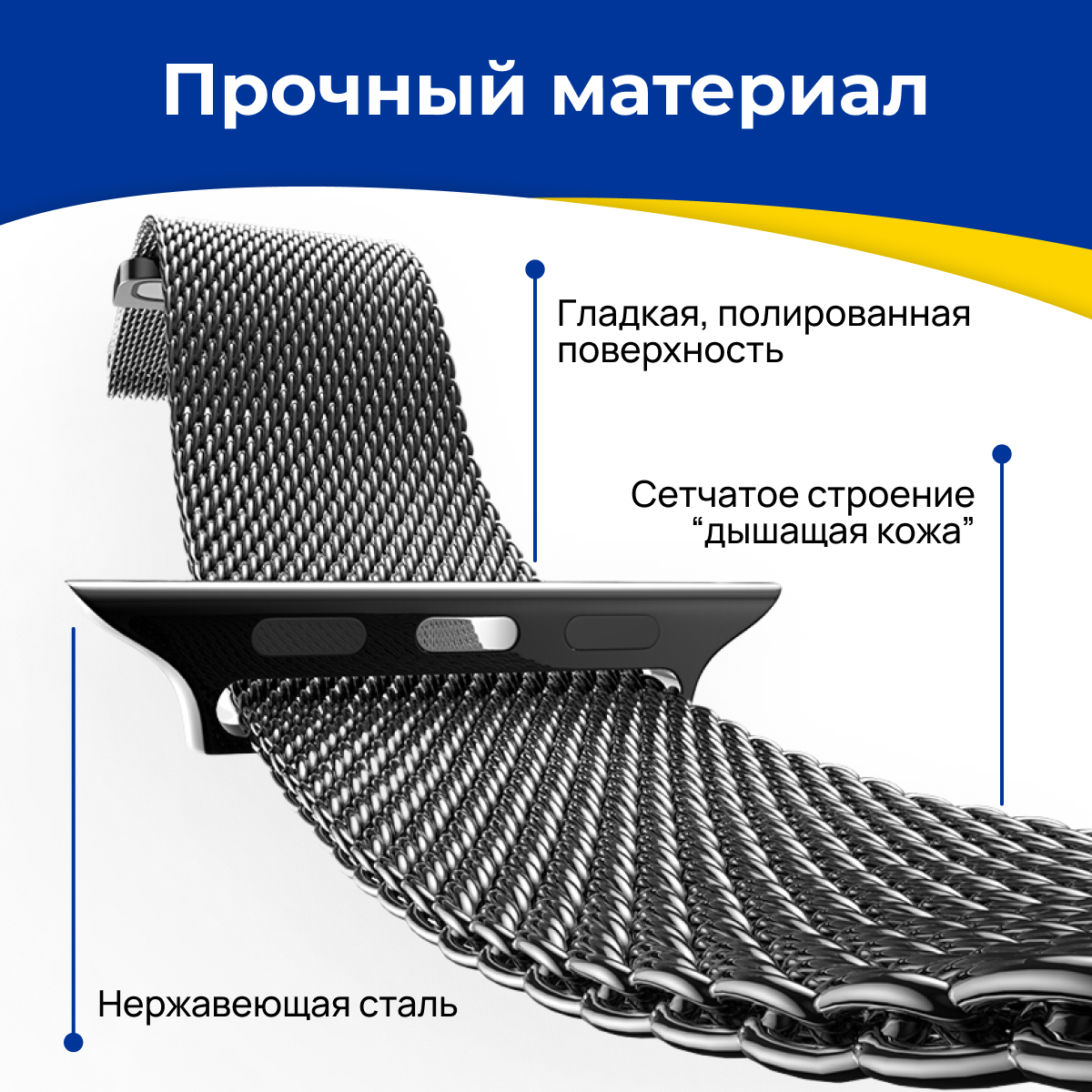 Металлический ремешок на фитнес-трекер Xiaomi Mi Band 7 / Стальной браслет миланская петля для умных смарт часов Сяоми Ми Бэнд 7 / Черный
