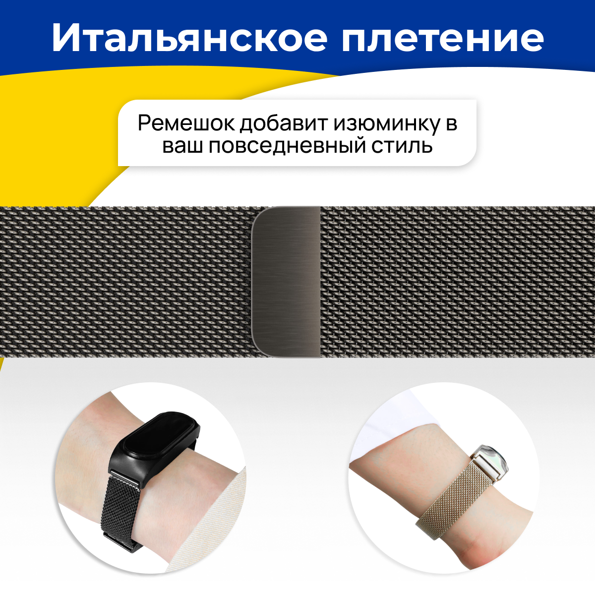 Металлический ремешок для фитнес-трекера Xiaomi Mi Band 5 и 6 / Стальной браслет миланская петля для умных смарт часов Сяоми Ми Бэнд 5 и 6 / Графит информация:
