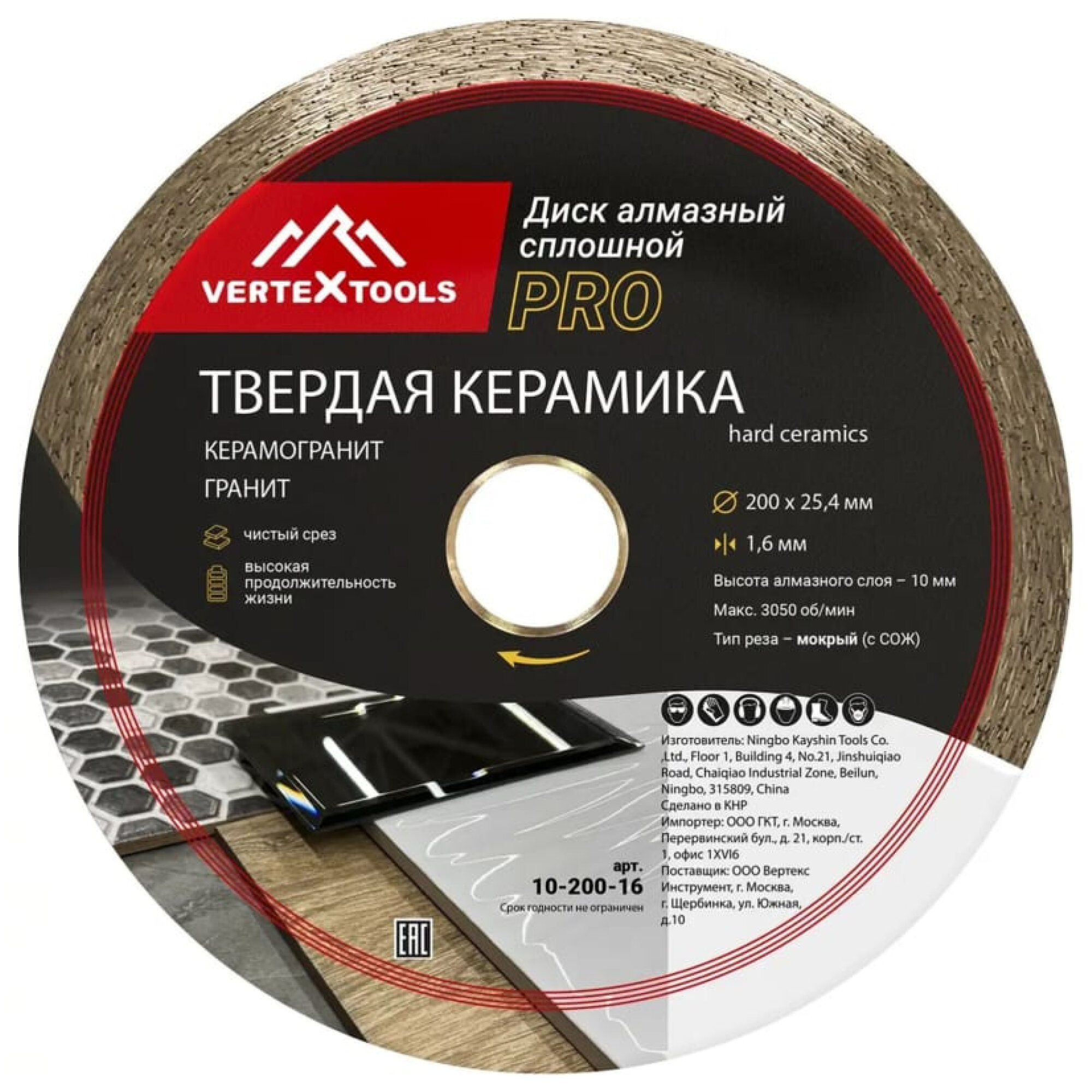 Vertex диск алмазный по керамике vertextools pro 200х25,4х1,6, шт информация: