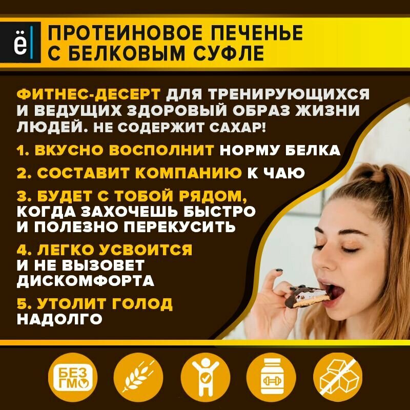 Протеиновое печенье с белковым суфле ё|батон без сахара Ассорти 9 шт 765 ₽