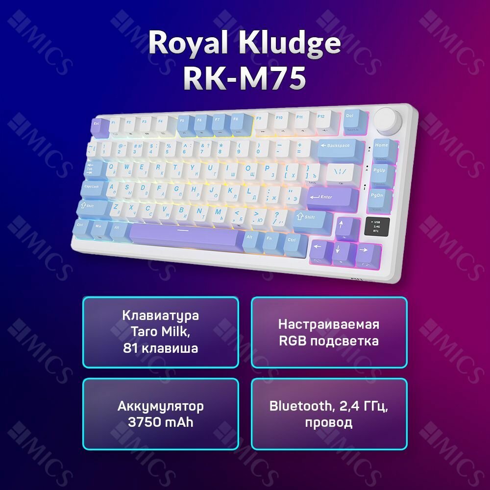 Беспроводная механическая клавиатура Royal Kludge RK-M75 цвет Taro Milk, RGB, hot swap, кейкапы без подсветки символов, линейные свитчи (RK Silver) информация: