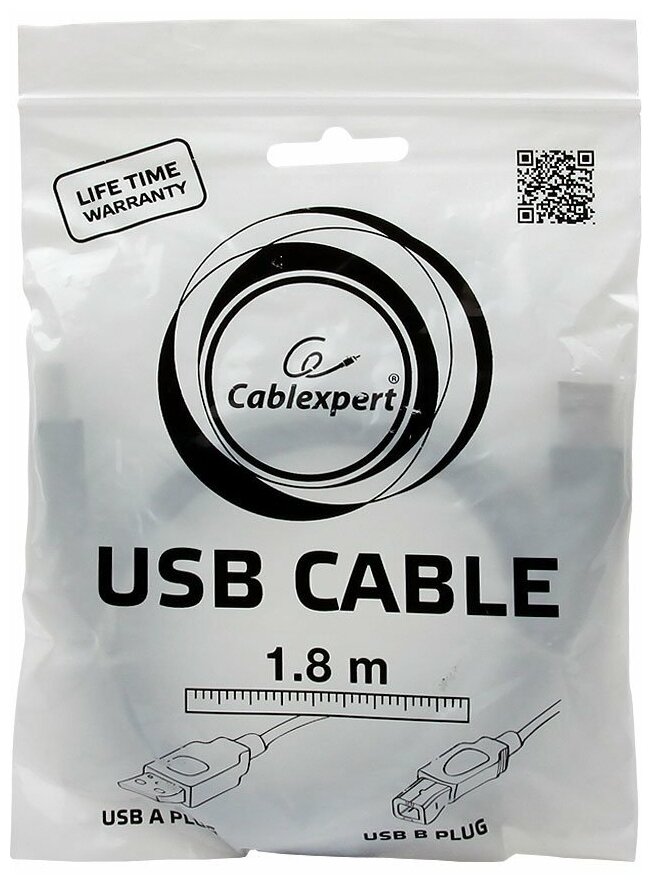 Кабель USB 2.0 Pro, AM/BM, 1,8 метра, экранирование для снижения помех, Cablexpert информация: