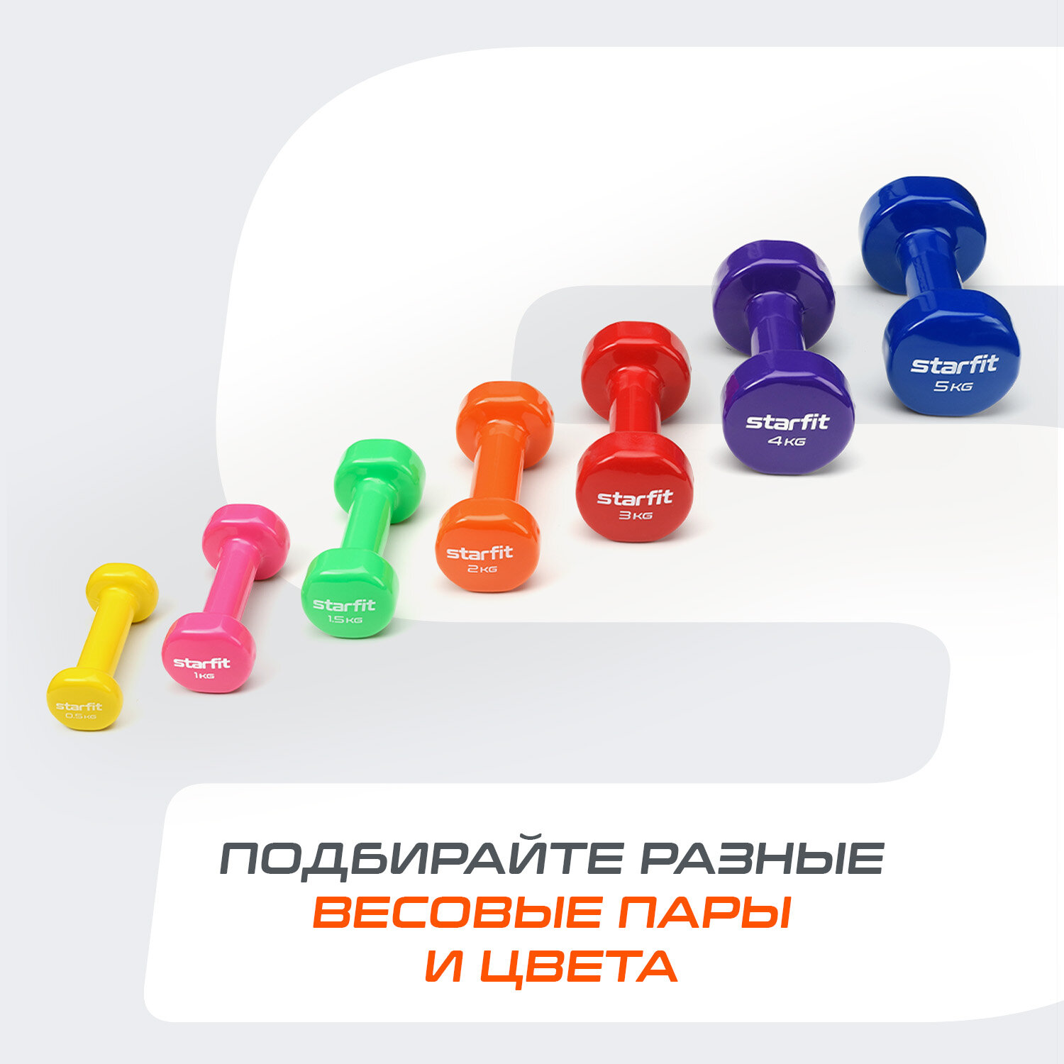 Гантели для фитнеса виниловые набор гантелей гантель STARFIT DB-101 2 кг, оранжевый, 2 шт 1 769 ₽