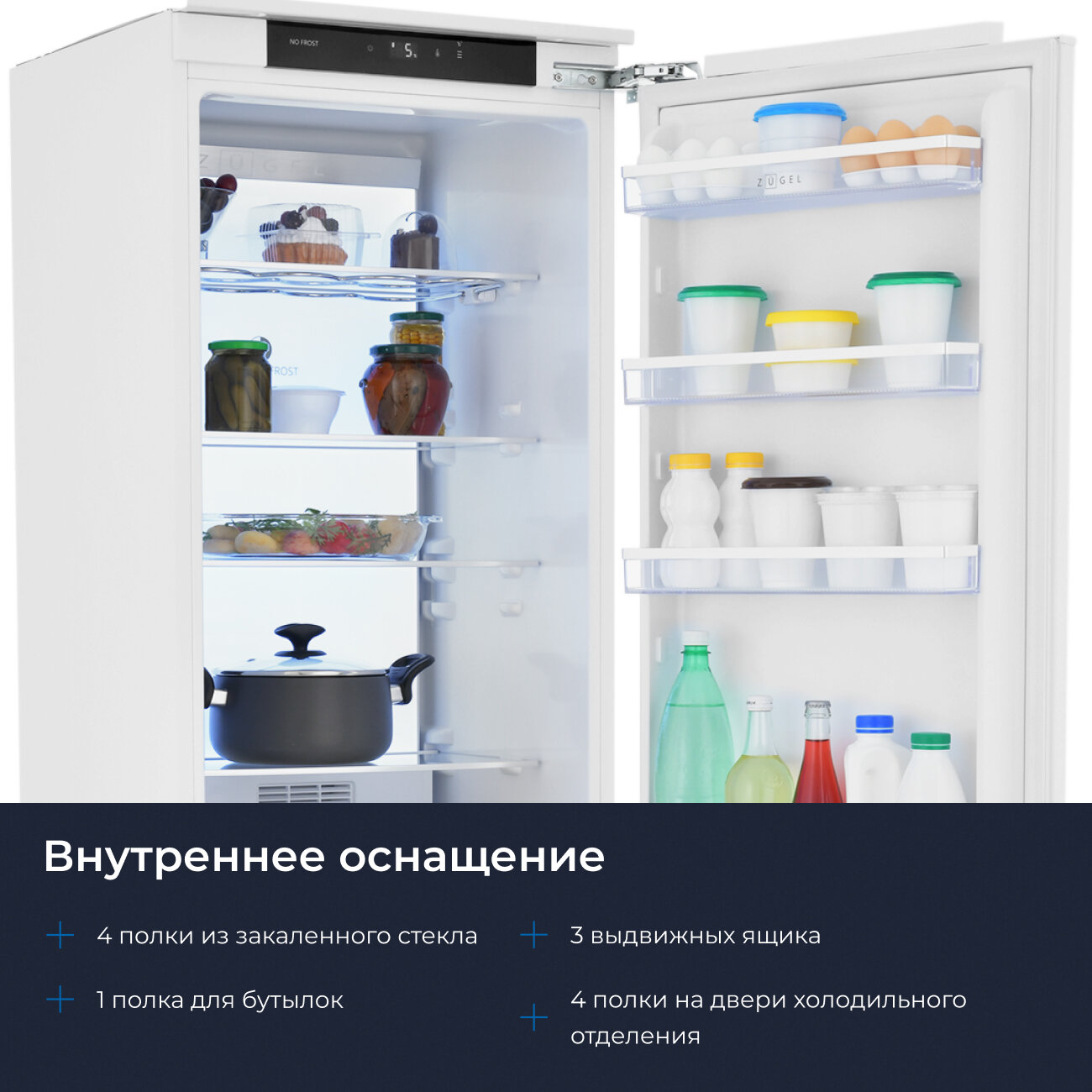 Холодильник однокамерный встраиваемый ZUGEL ZRI1750NF, класс энергопотребления A+, 281 л, Full No Frost, режим Суперохлаждение, LED-подсветка AMBILIGHT, белый информация: