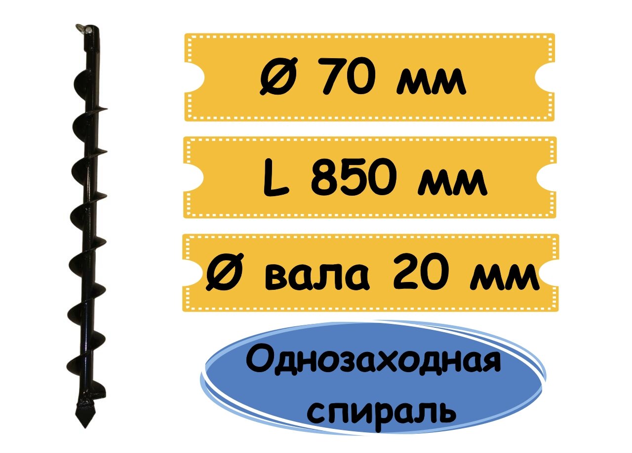 Шнек для мотобура по грунту МВШ-70, диаметр бурения 70 мм, длина 850 мм информация: