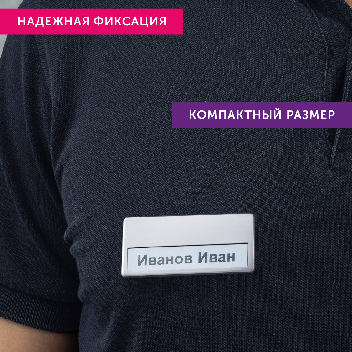 Отзывы на Бейдж горизонтальный с окошком FastMarket, 68х32мм, пластик, серебристый