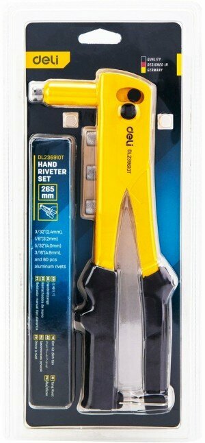 10 цен на Заклепочник ручной Deli DL236910T 10,5" + 60 шт заклепок Материал: 20Cr. 265 мм. Носовая часть: 2,4–