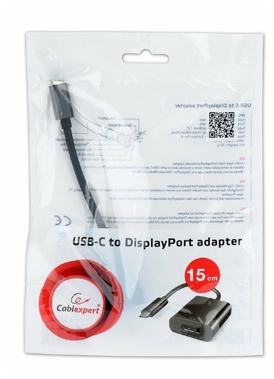 Переходник USB Cablexpert A-CM-DPF-01 USB Type-C/DisplayPort, 15см, пакет информация: