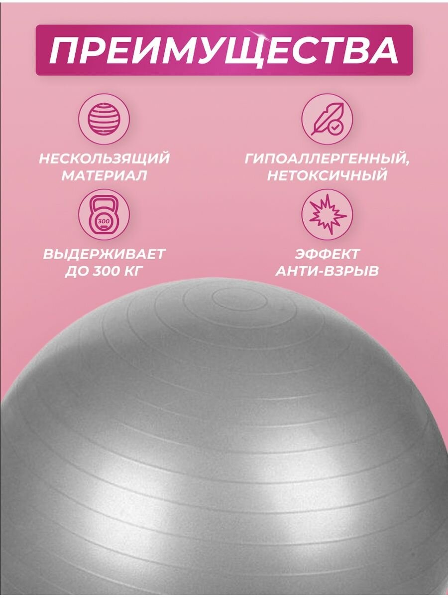 Фиолетовый мяч для фитнеса гимнастический SILAPRO, ПВХ, d75см, 900гр