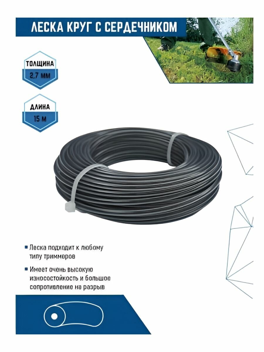 Леска для триммера, 2,7мм, круглая с сердечником 15м, VERTEXTOOLS информация: