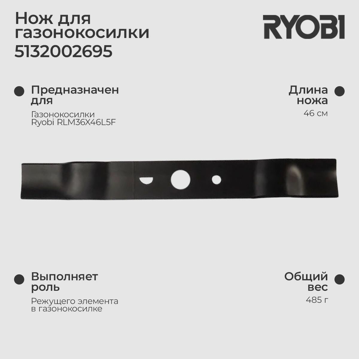 | Комплектация | 1 нож для газонокосилки RLM36X46L5F Ryobi RAC412 5132002695 |