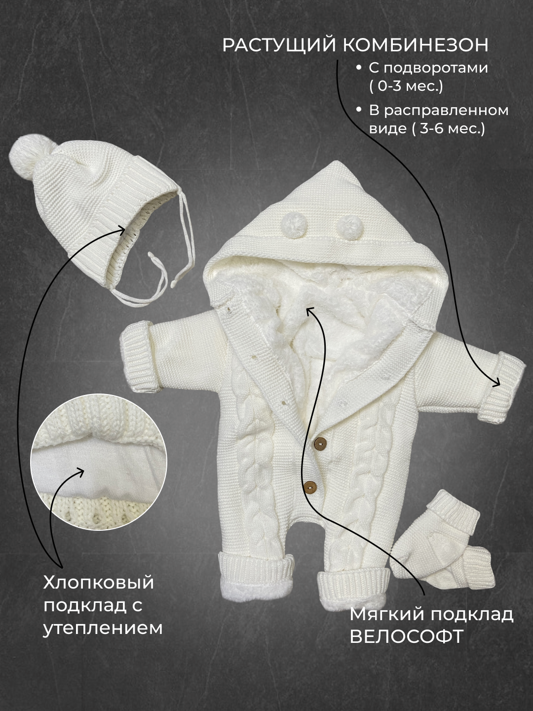 Конверт для новорожденного на выписку теплый вязаный 8 предметов в роддом белый 6 060 ₽