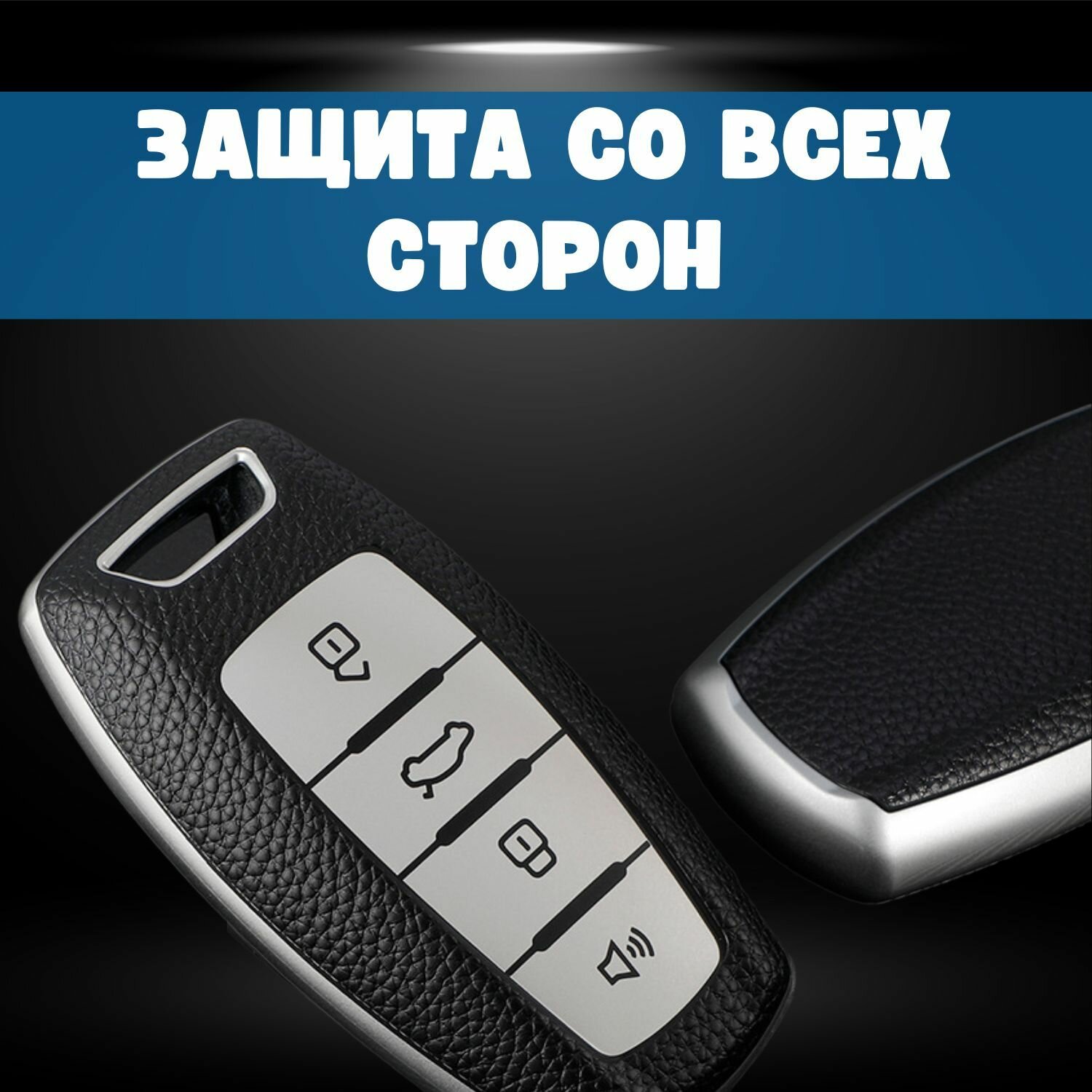 Защитный чехол для смарт-ключей Hyundai (Solaris, Santa Fe, Hyundai 130) с логотипом и брелком