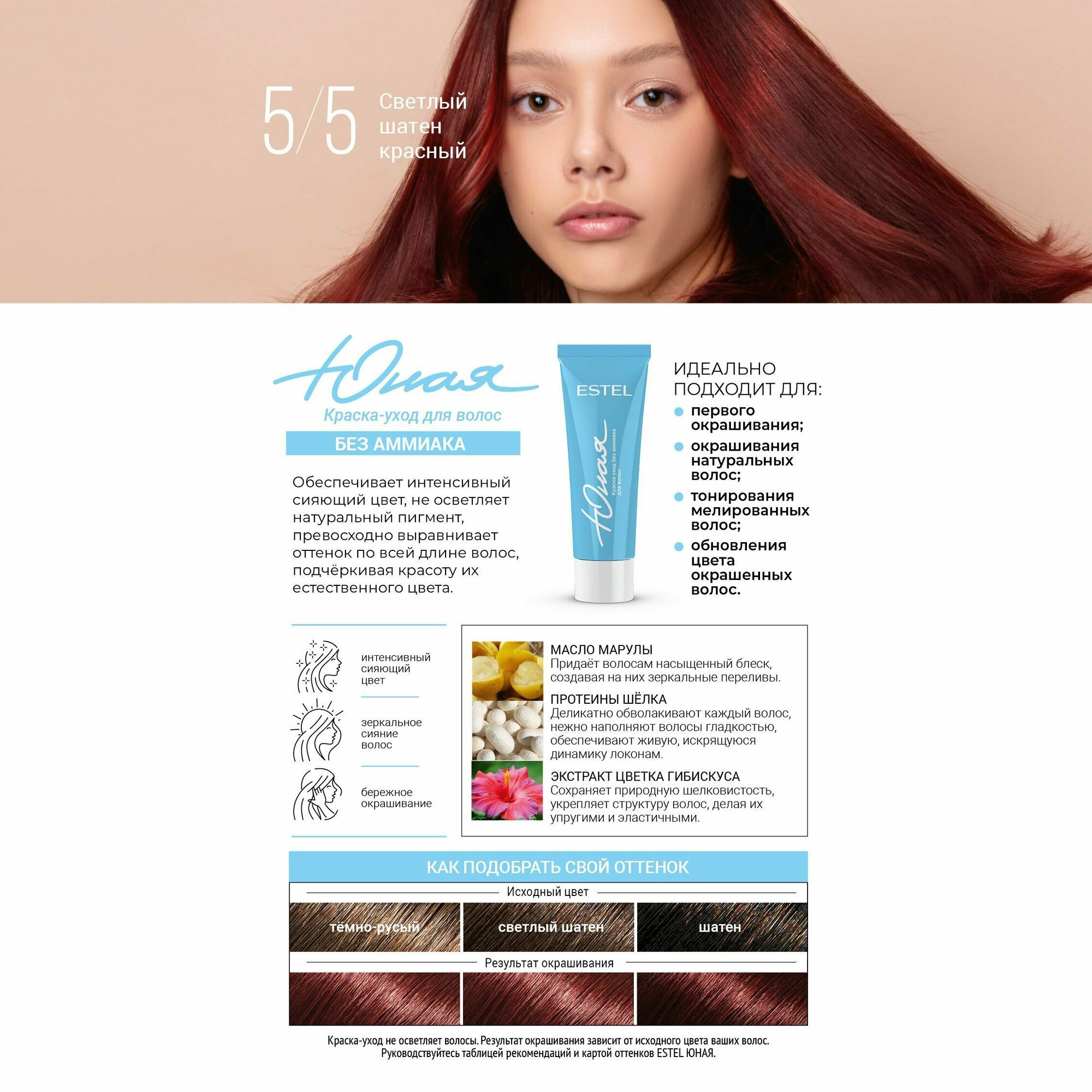 ESTEL Краска-уход для волос без аммиака юная 5/5 светлый шатен красный информация: