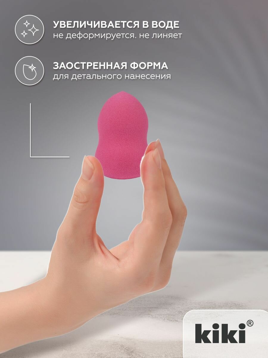 Спонж для макияжа kiki BEAUTY PUFF SP-01, грушевидный мягкий косметический бьюти блендер для пудры жидких и кремовых текстур розовый, кики информация: