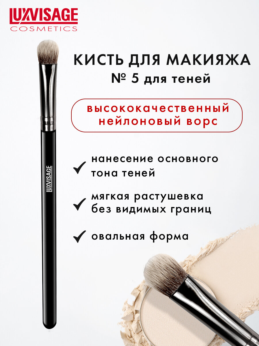 Кисть косметическая LUXVISAGE № 5 для теней овальная Высококачественный нейлоновый ворс информация: