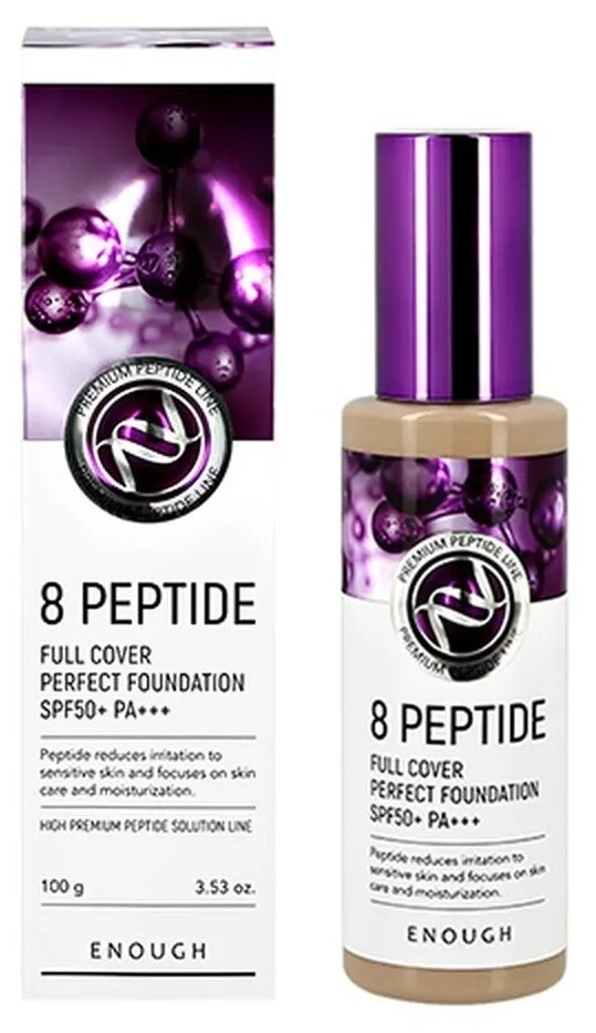Enough тональный крем 8 Peptide Full Cover Perfect Foundation, SPF 50, 100 г, оттенок: №21, 1 шт.