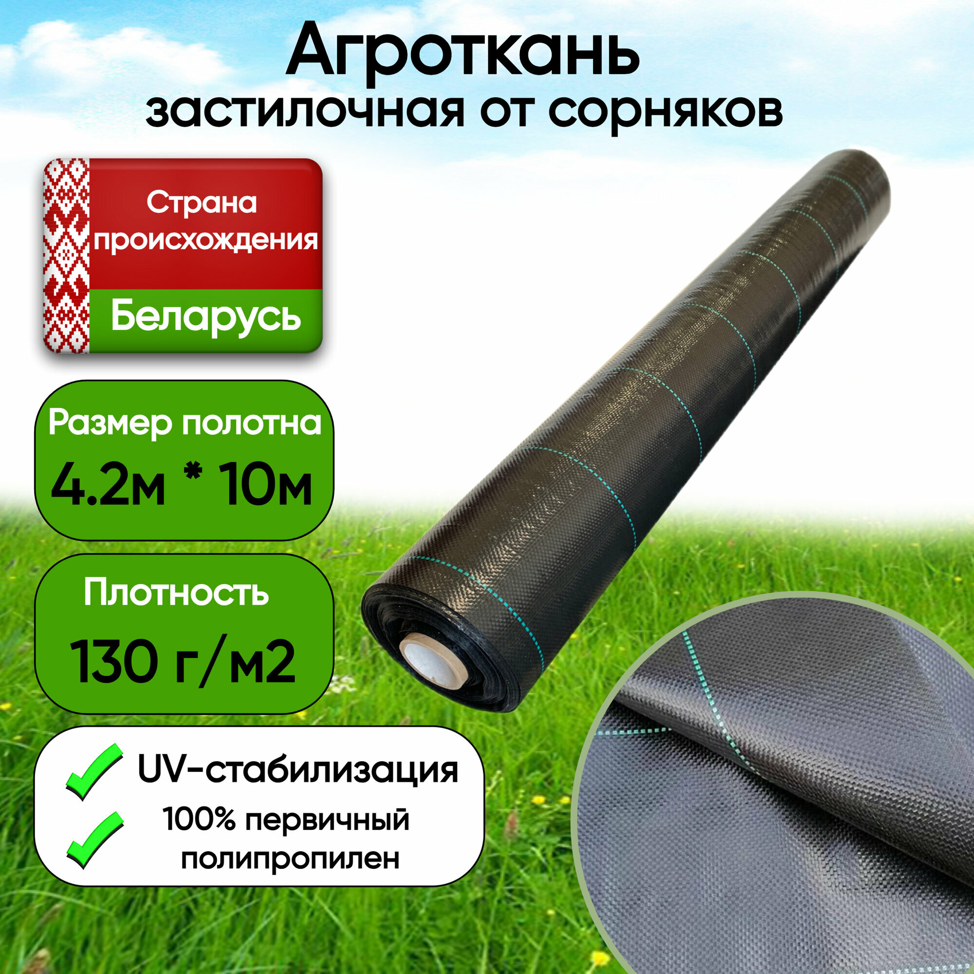 10 цен на Агроткань застилочная, Беларусь, 130 г/м2, 4.2м * 10м, черная с разметкой (S=42м2)