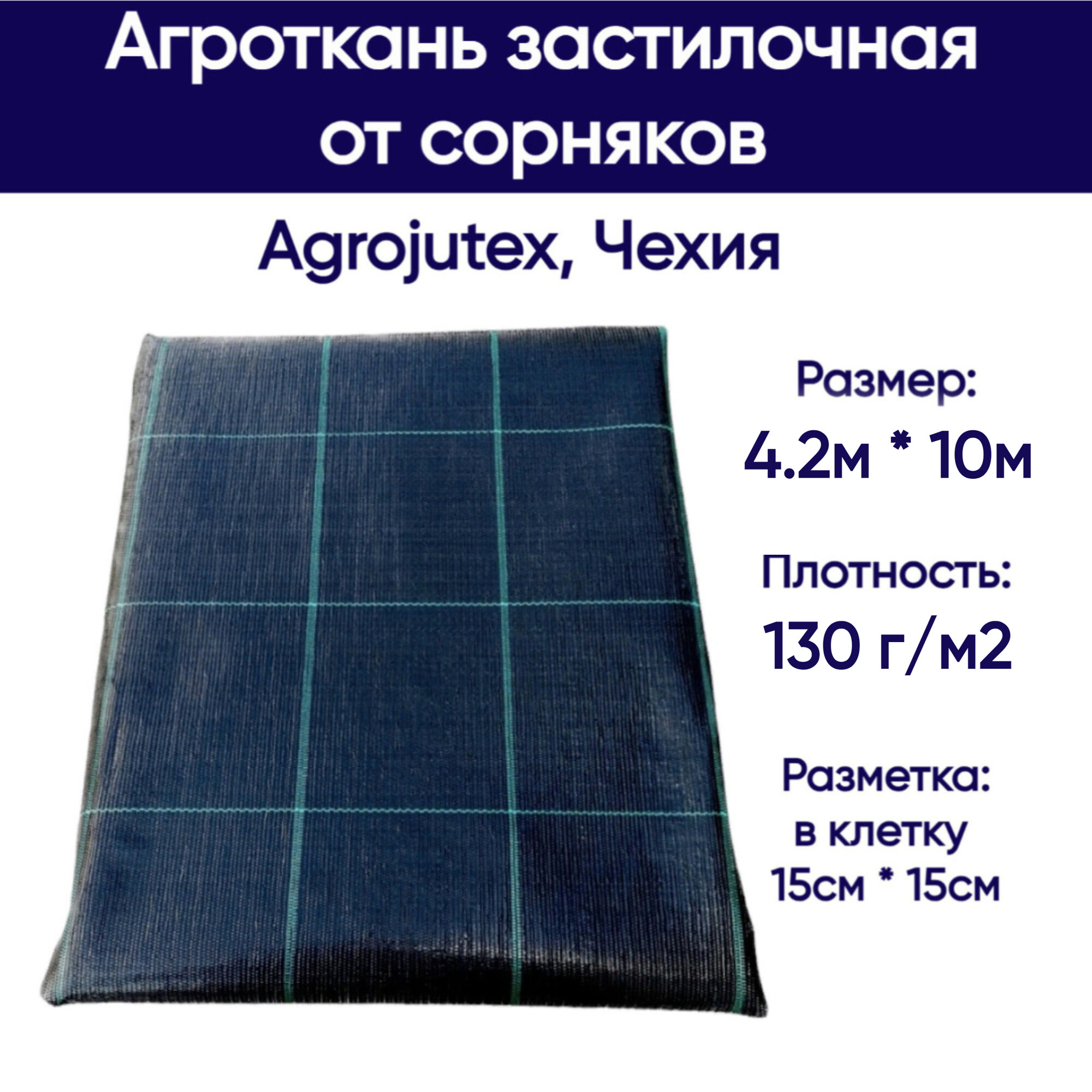 Агроткань застилочная от сорняков Agrojutex, Чехия, 130 г/м2, размеры 4.2м * 10м, с разметкой (фасовка) информация: