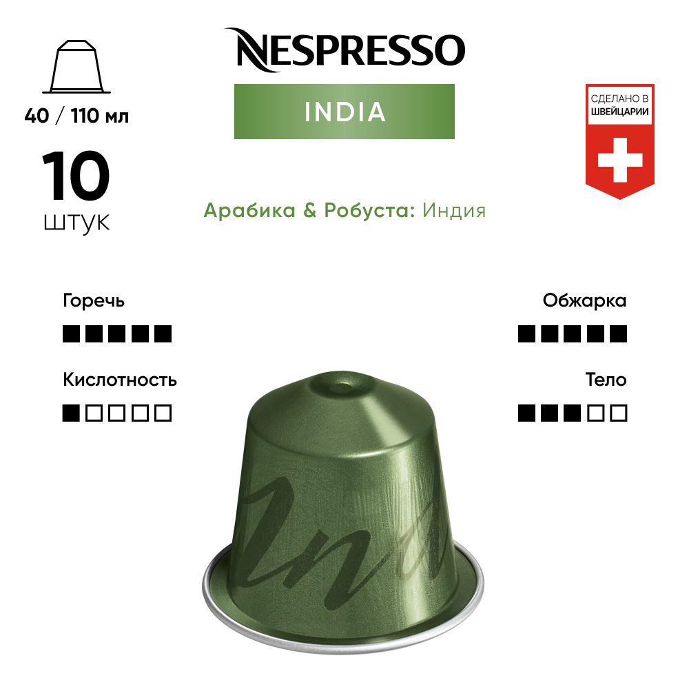10 цен на Кофе в капсулах Nespresso ORIGINAL India, 10 кап., 40 и 110мл