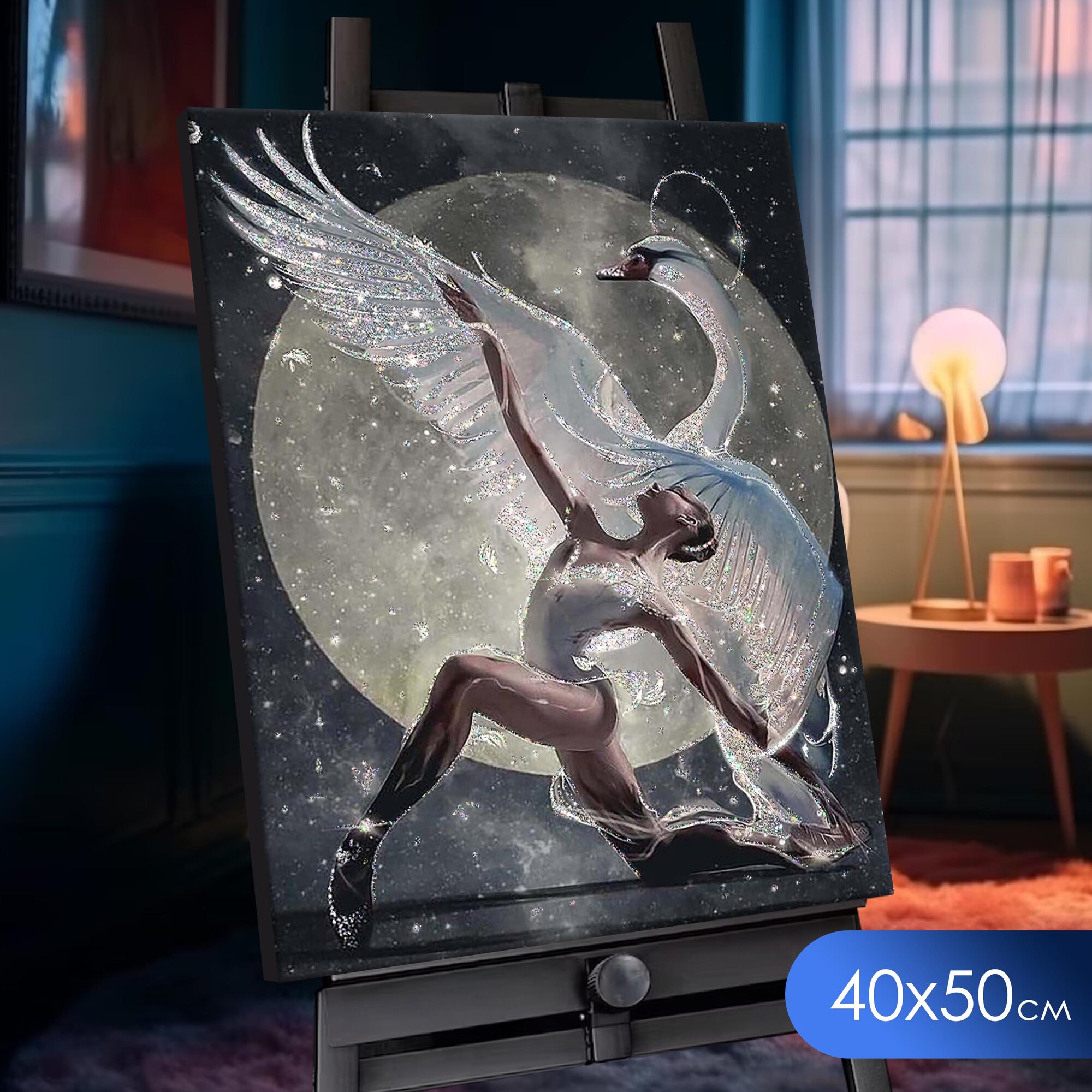 Картина по номерам с кристаллами из хрусталя (40х50) Грация лебедя (18 цветов) SHR0548 информация: