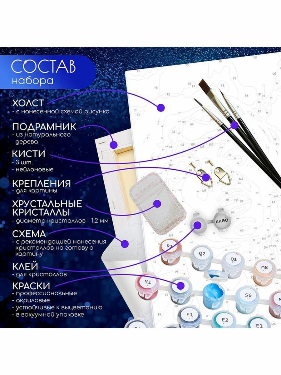 | Дополнительная информация | Картина по номерам с кристаллами из хрусталя |