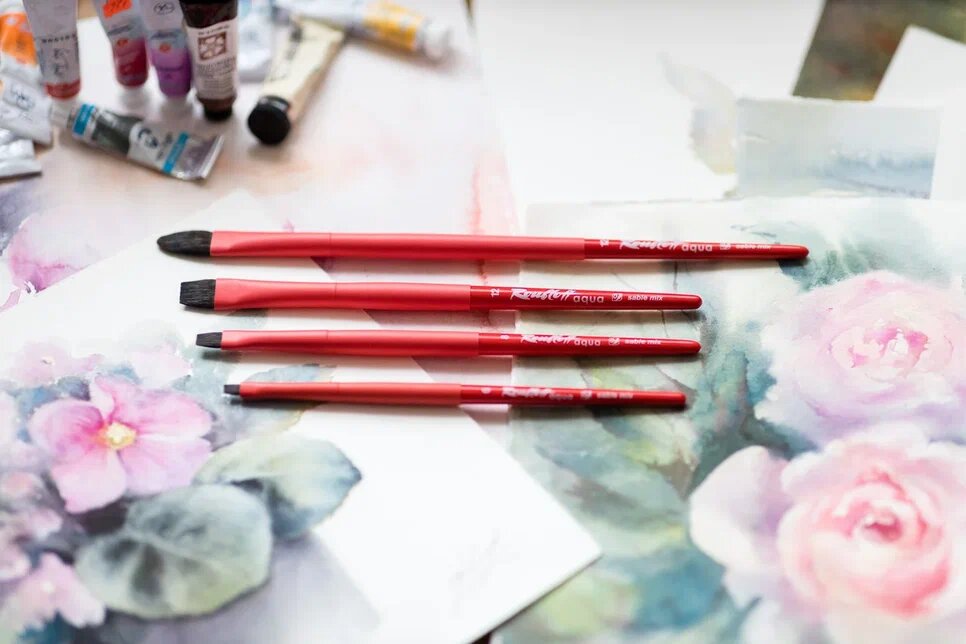Roubloff Aqua Red flat кисть художественная соболь микс для акварели № 6 плоская, покрытие soft-touch 651 ₽