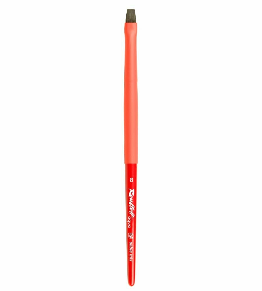 Roubloff Кисть Aqua Red Flat № 8 плоская из микса соболя и синтетики для акварели, короткая ручка информация:
