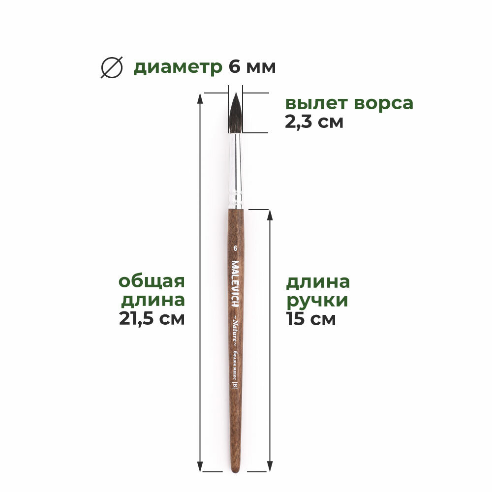 Кисть для акварели "Малевичъ" Nature №6, круглая, из белки и мягкой синтетики информация: