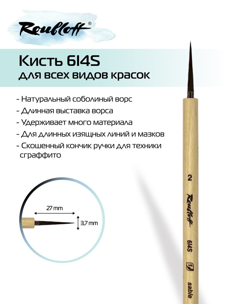 Отзывы на Кисть художественная Roubloff 6I4S №2 лайнер из соболя для акварели, гуаши, темперы, каллиграфии, короткая ручка