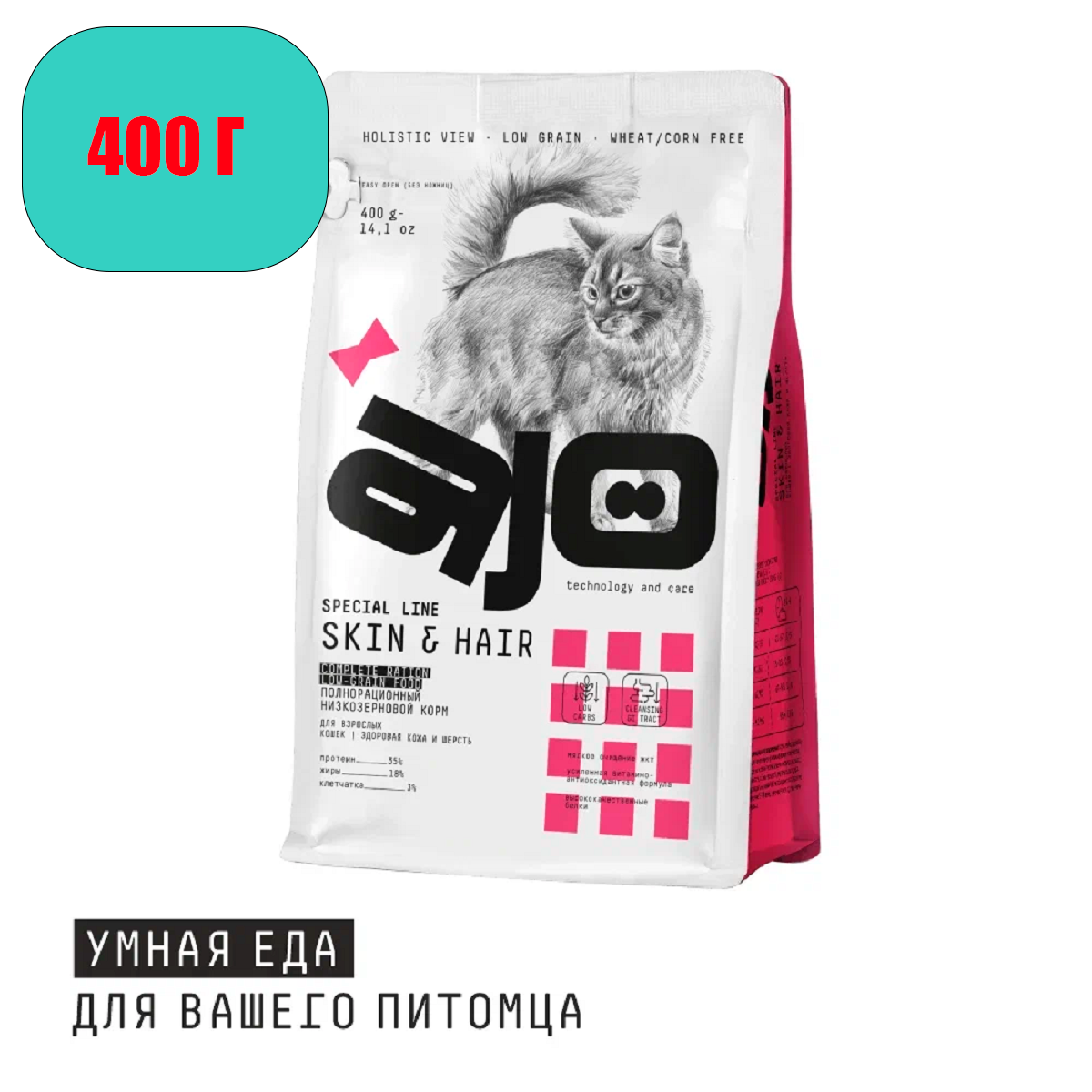 10 цен на AJO Cat Skin & Hair Сухой корм для кошек здоровая кожа и красивая шерсть 400гр