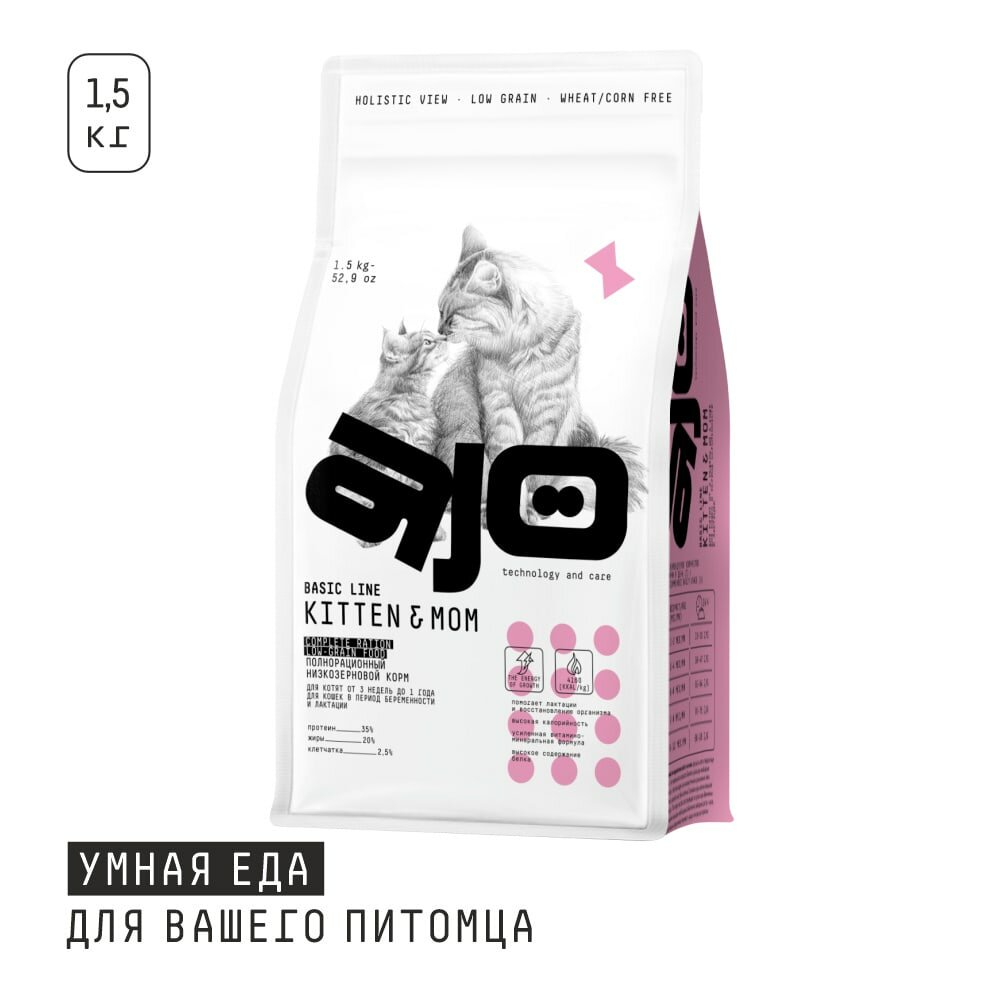 AJO Cat Kitten & Mom Сухой полнорационный корм для котят, беременных и кормящих кошек 1,5 кг