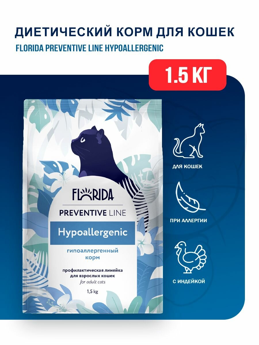 Корм Florida Preventive Line Hypoallergenic для кошек, гипоаллергенный, 1.5 кг 1 282 ₽