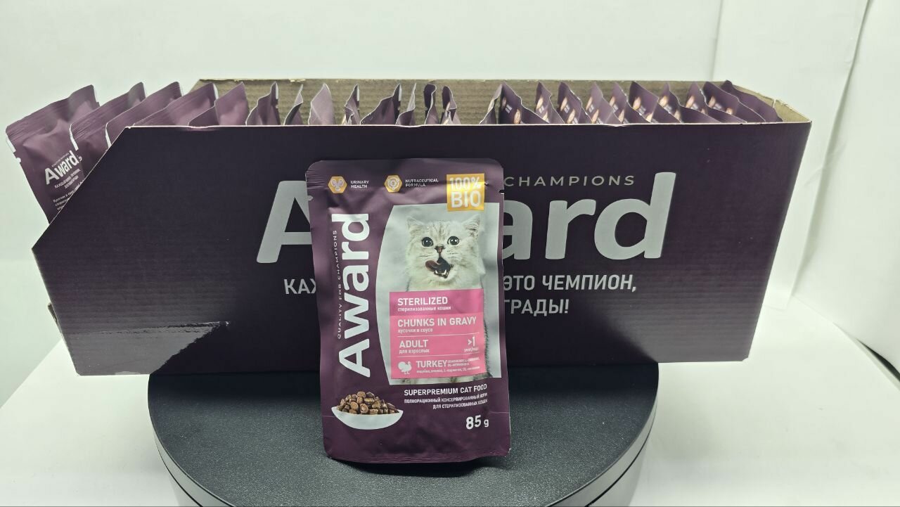 Паучи AWARD Sterilized cats кусочки с индейкой 24х85г информация: