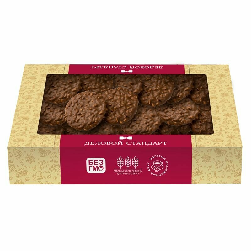 Печенье сдобное Деловой Стандарт, Печенье и фундук в шоколаде, 450 г информация: