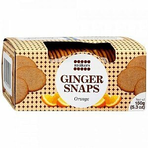 10 цен на Ароматное имбирное печенье Nyakers GINGER SNAPS Orange 150г, с цитрусовым вкусом апельсина., не содержит пальмового масла, из Финляндии