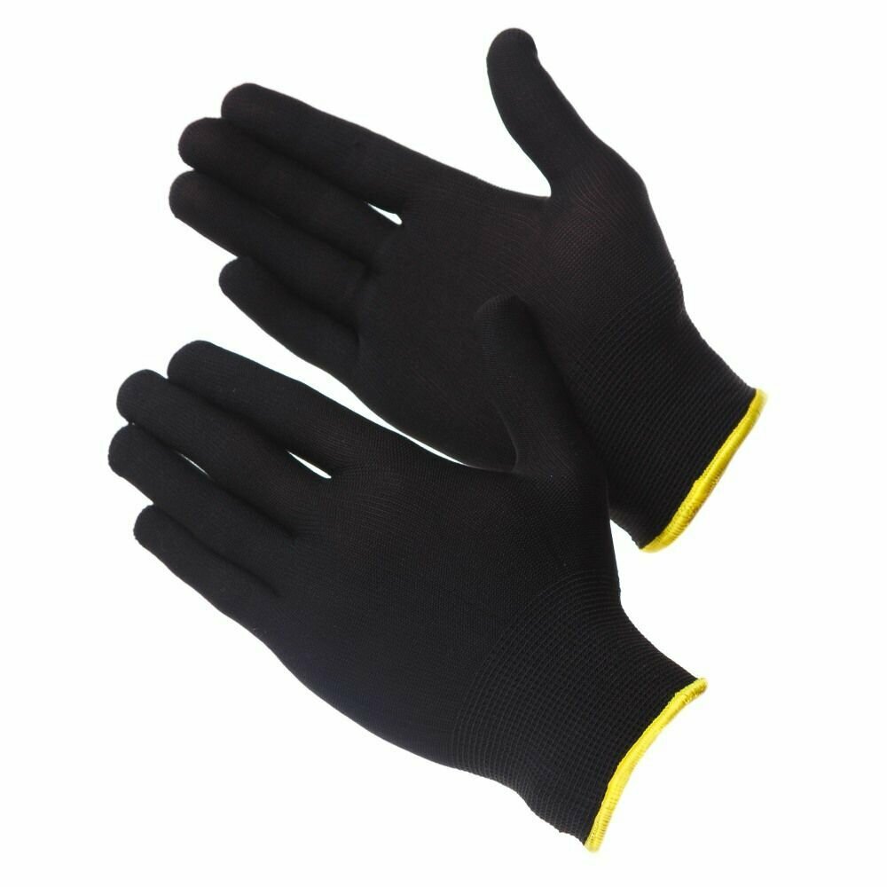Перчатки нейлоновые для точных работ, рабочие, строительные, без покрытия Gward Touch Black NP1001 черного цвета, размер 8 (M), 12 пар информация: